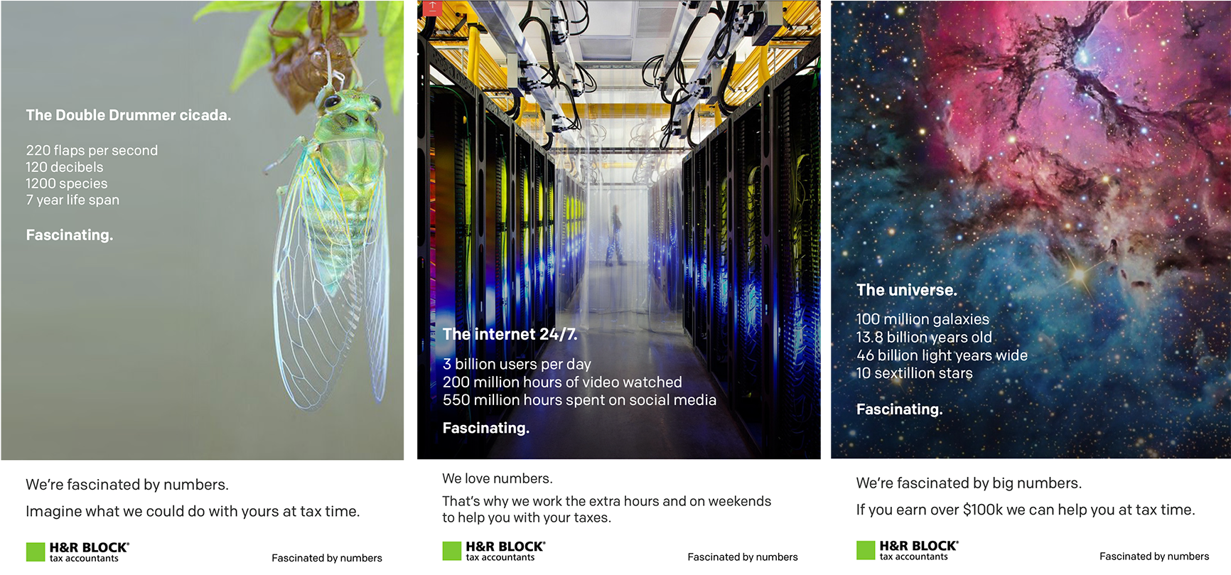 Our TV spots brought to life the incredible and wondrous role that numbers play in the everyday world around us. Much like an amazing David Attenborough documentary, the viewer is enlightened by the detail. Each spot ends with a twist as we introduce our H&R Block tax expert narrating.
