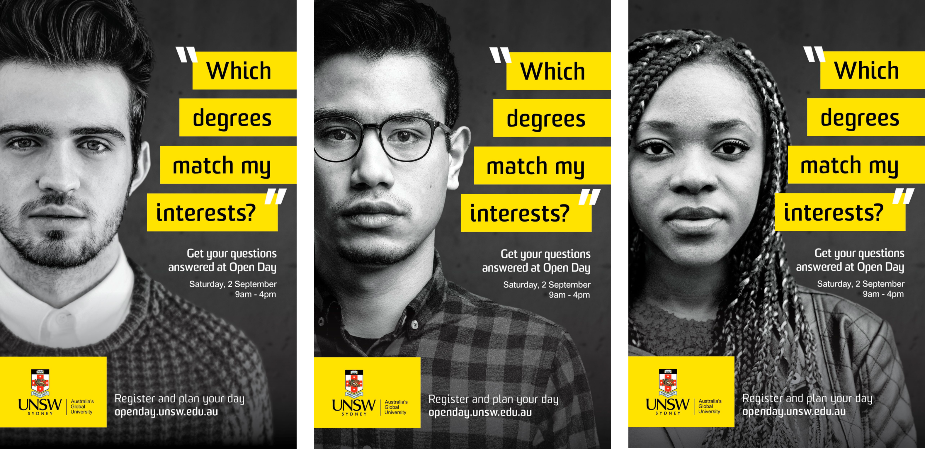 Using stock photography of our target demographic, we created a campaign that positioned UNSW as the university who would answer all your questions quickly and honestly.