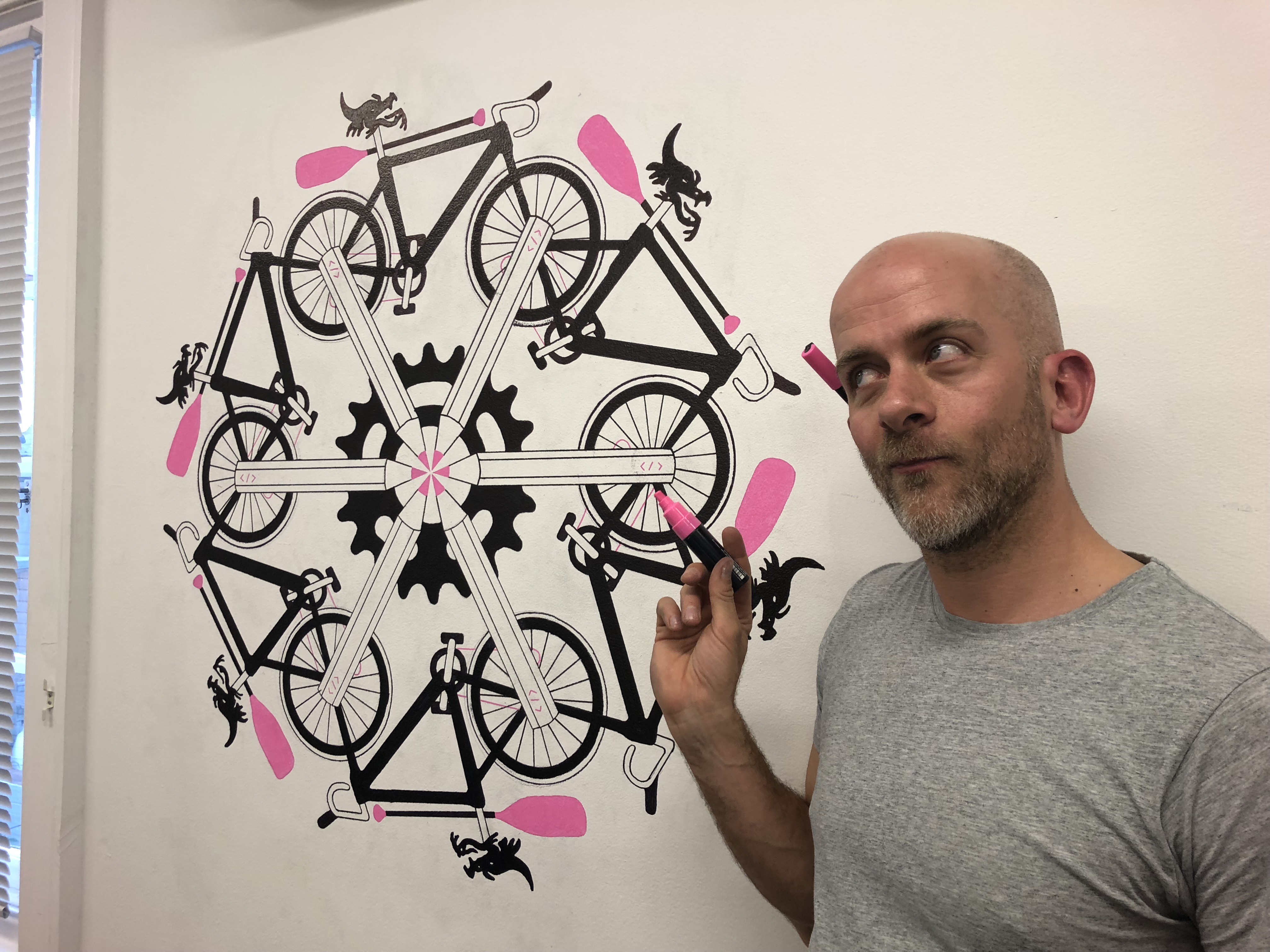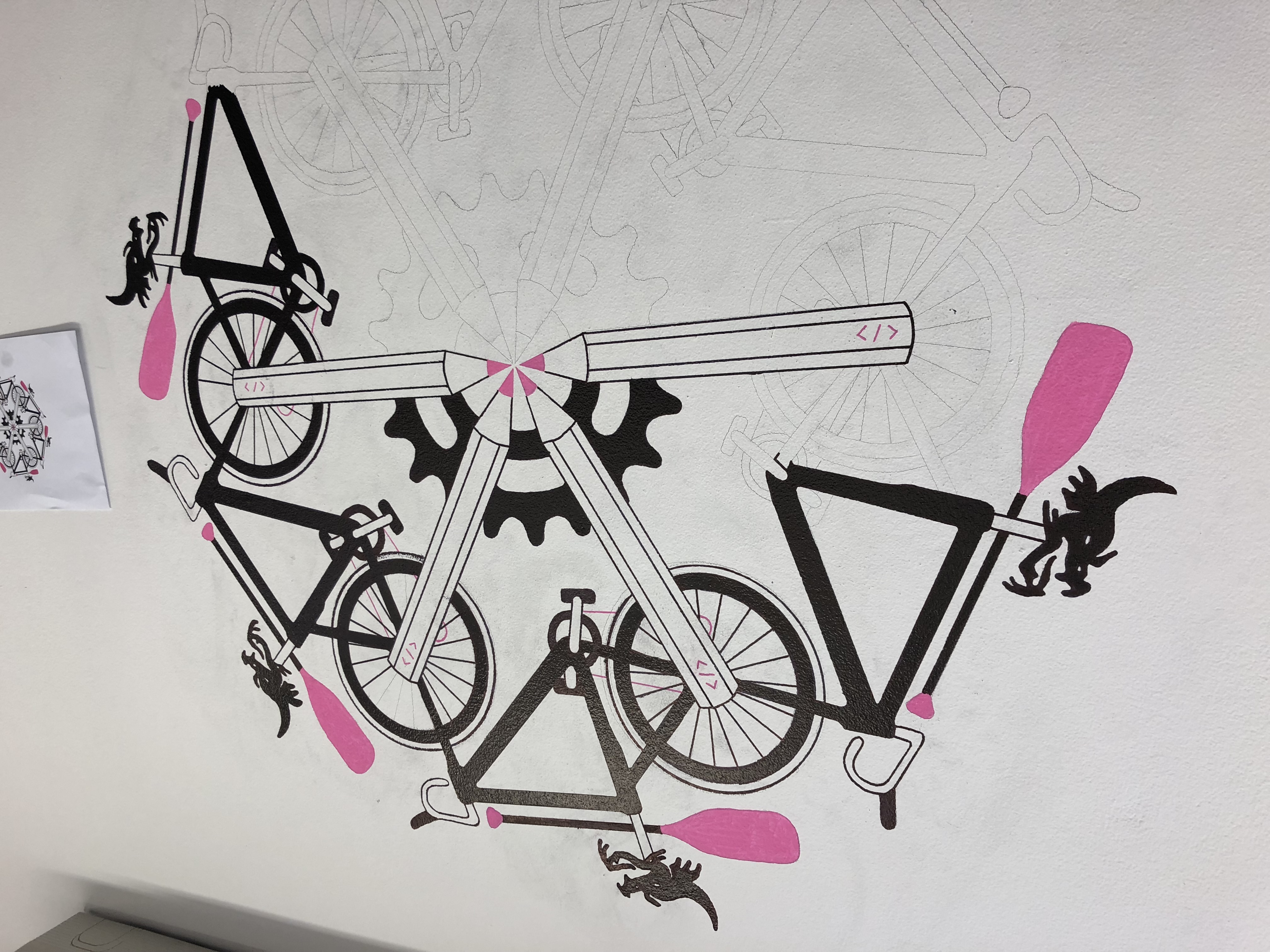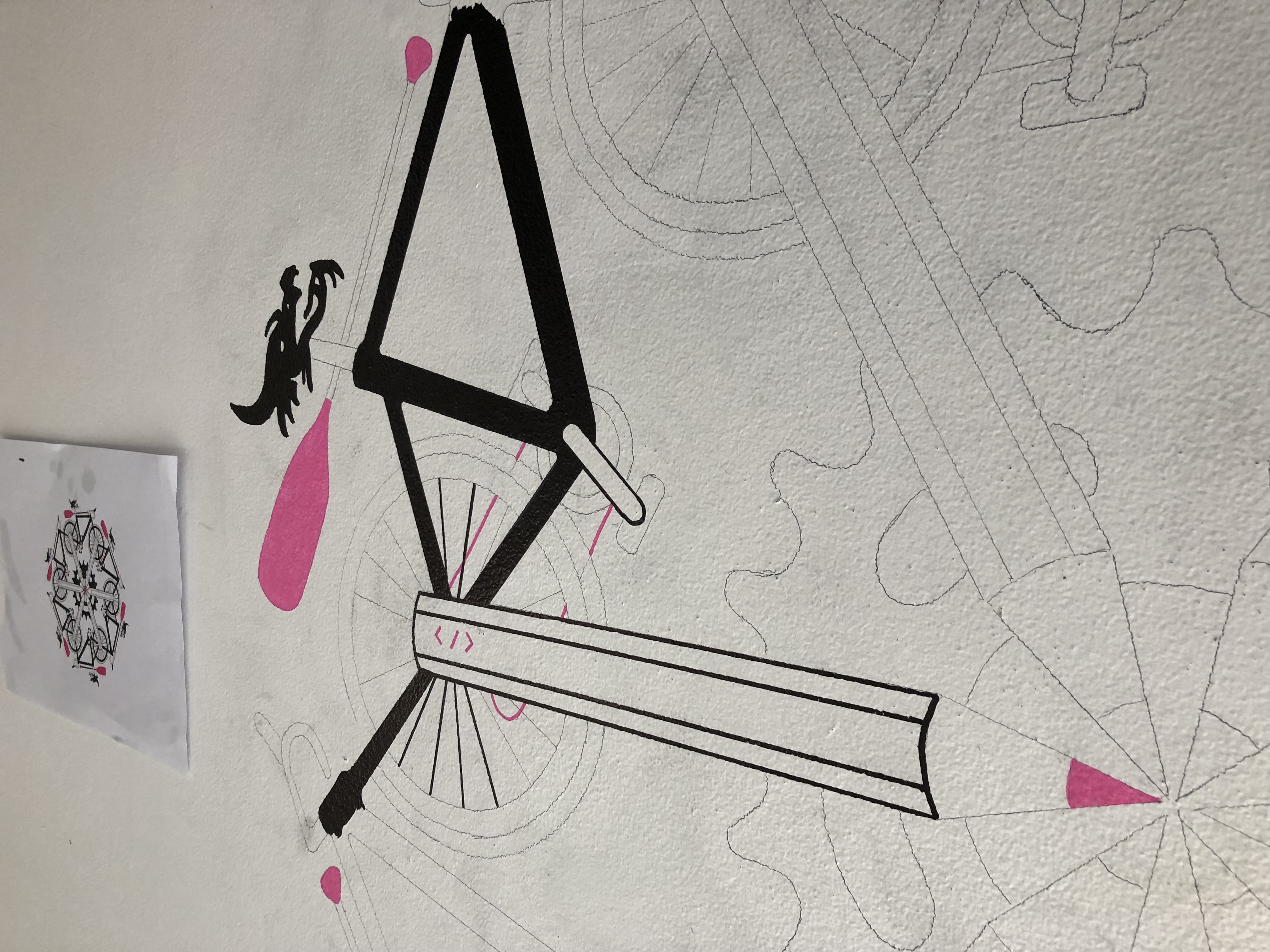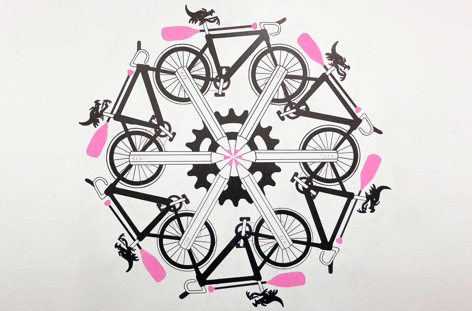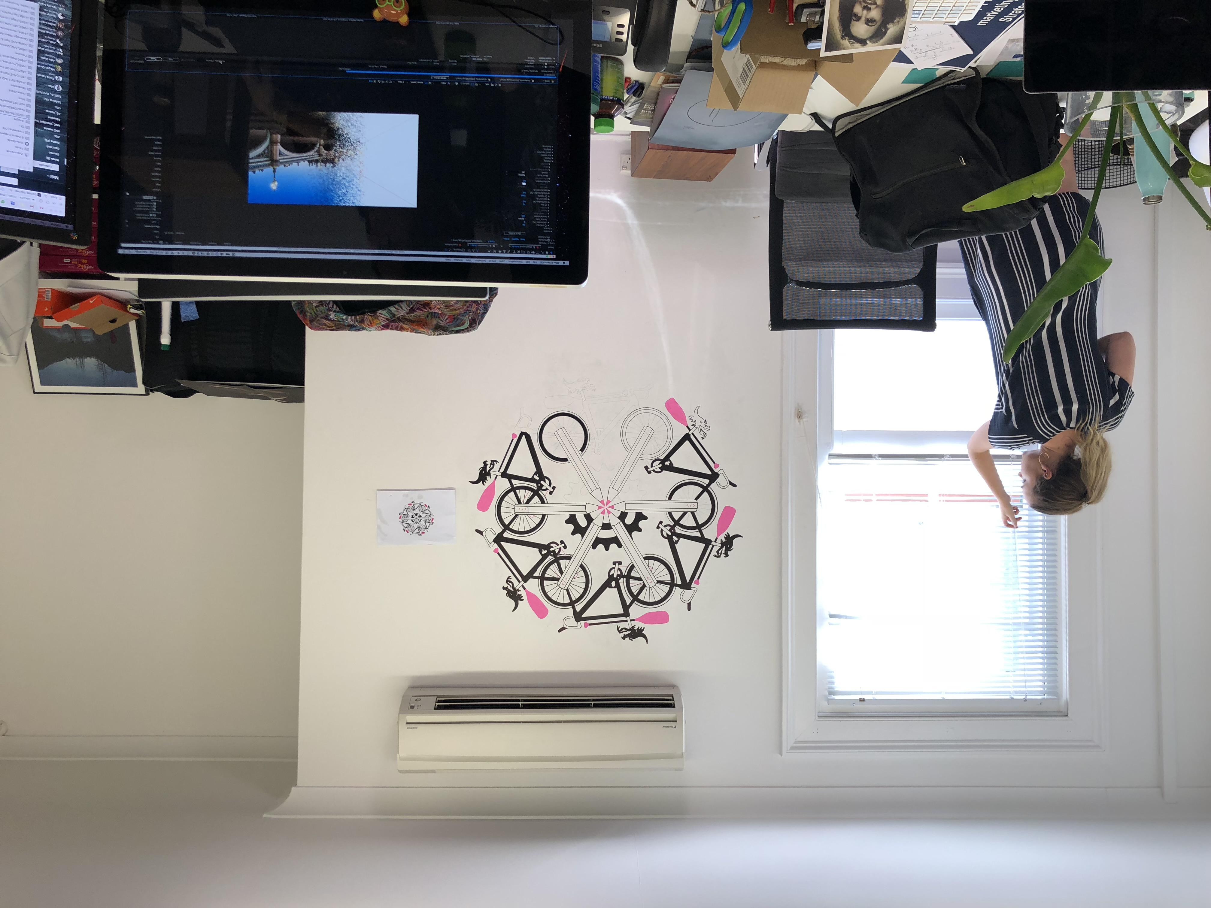 In order to spruce up the bare, white walls of our studio space we decided to each embark on designing our own mandala. Mine featured bicycles, dragon boats, pencils and code, all things that reflected my life at the time.