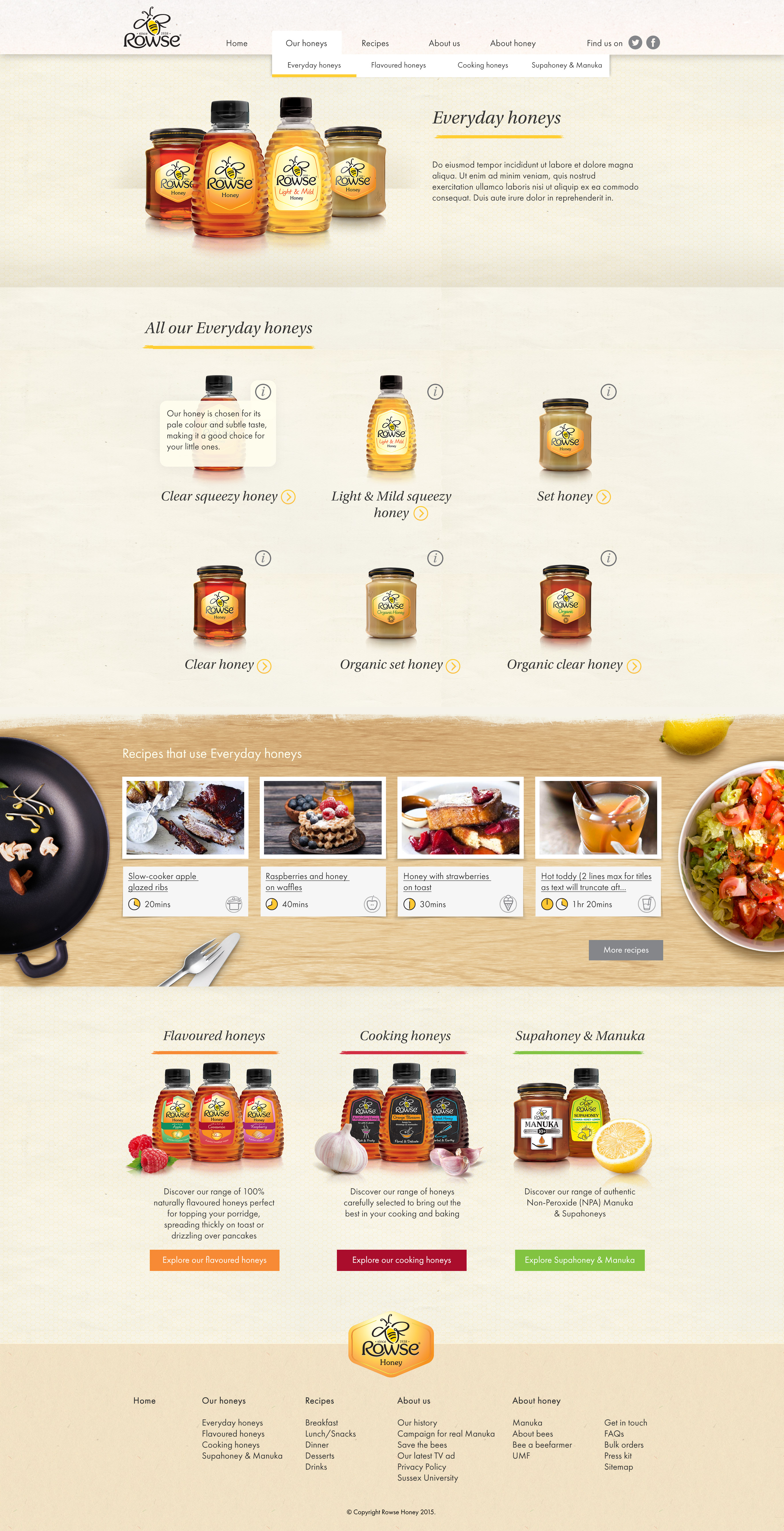 To tie in with the launch of the new Rowse Honey brand campaign, we redesigned and rebuilt their website, filling it with new fresh, content including a brand new recipes section.